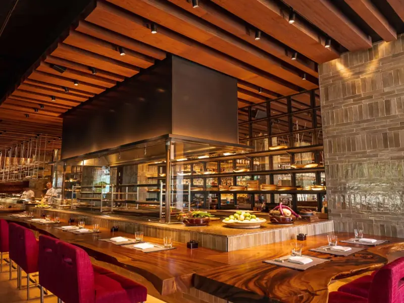 Zuma’s menu showcases Japanese excellence with shareable plates. Starters include Wagyu Tataki with Summer Truffle ($28) and Spicy Tuna Maki ($22). Mains feature Miso-Marinated Black Cod ($48), Grilled Seabass with Yuzu ($40), and Otoro with Smoked Tomato Dashi ($36). Sides like Spicy Edamame ($12) complement the meal, while desserts such as Green Tea Mochi ($14) pair with cocktails like the Zuma Rum Grog ($18). Some guests mention variable service but praise the exquisite flavors.