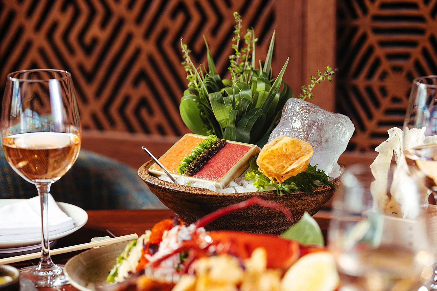 Zuma’s menu showcases Japanese excellence with shareable plates. Starters include Wagyu Tataki with Summer Truffle ($28) and Spicy Tuna Maki ($22). Mains feature Miso-Marinated Black Cod ($48), Grilled Seabass with Yuzu ($40), and Otoro with Smoked Tomato Dashi ($36). Sides like Spicy Edamame ($12) complement the meal, while desserts such as Green Tea Mochi ($14) pair with cocktails like the Zuma Rum Grog ($18). Some guests mention variable service but praise the exquisite flavors.