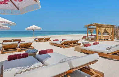The tableau brims with artful informality: macramé canopies billow over mosaic-tiled loungers, evoking forgotten ateliers amid wild fennel and sea holly, while driftwood sculptures sentinel a lagoon-like pool that kisses the tide. Woven rugs underfoot and mosaic lanterns aloft foster pockets of poetic abandon, from hammock-suspended siestas to fire-pit confabs gazing seaward. Aurora breaks with mist-shrouded yoga flows, cresting into sunlit symposia where acoustic troubadours pluck at heartstrings. As gloaming claims the firmament, bonfires crackle and DJs murmur deep-tissued downtempo, transmuting Casa Amor’s gentle undulation into a nocturnal narrative of shared soliloquies, distinguishing its hush from Dubai’s beachclubs clamor.