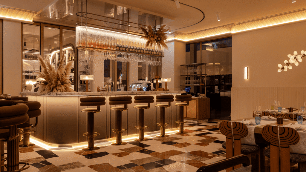 Gastronomic reverie, overseen by ex-Ritz Paris maestro Valentin Bernigaud, honors timeless Gallic traditions with a contemporary finesse. Relish feather-light niçoise salads studded with confit tuna and haricots verts (AED 95), or tender coq au vin reimagined with heirloom carrots and pearl onions (AED 140), each plate a homage to terroir-driven purity. Communal charcuterie boards groan under cornichons, aged comté, and house-baked baguettes, while the raw bar yields oysters Kilpatrick kissed by mignonette (AED 80 per half-dozen). The bar’s arsenal dazzles with Riviera rhapsodies like the Lillet Libre (AED 65)—a tonic-spiked vermouth cascade with grapefruit twist—or the pitcher-sized Pêche Melba Fizz (AED 280), effusing peach eau-de-vie, prosecco, and macerated stone fruits for shared effulgence.