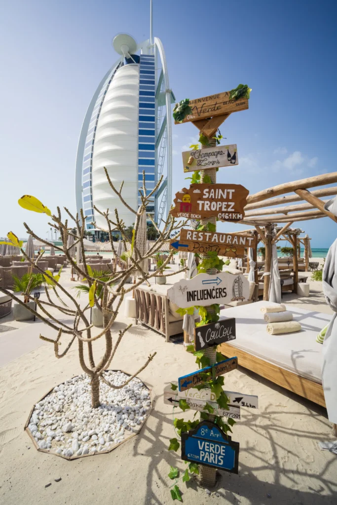 Nestled at Jumeirah Beach Hotel, Jumeirah St, Umm Suqeim 3, Dubai, United Arab Emirates, Verde Beach Dubai is a premier beach club and restaurant that brings the chic glamour of Saint Tropez’s Pampelonne Beach to the Middle East. Part of the Yeeels Group, this festive venue, opened in 2022, offers stunning views of the Burj Al Arab, exquisite Mediterranean cuisine, and a vibrant party atmosphere, attracting jet-setters, celebrities, and discerning travelers. For seamless access to this exclusive hotspot, concierge services like MyRSVP provide tailored VIP reservations, ensuring an unforgettable Dubai experience.