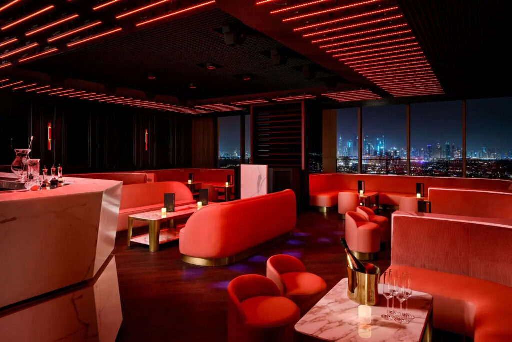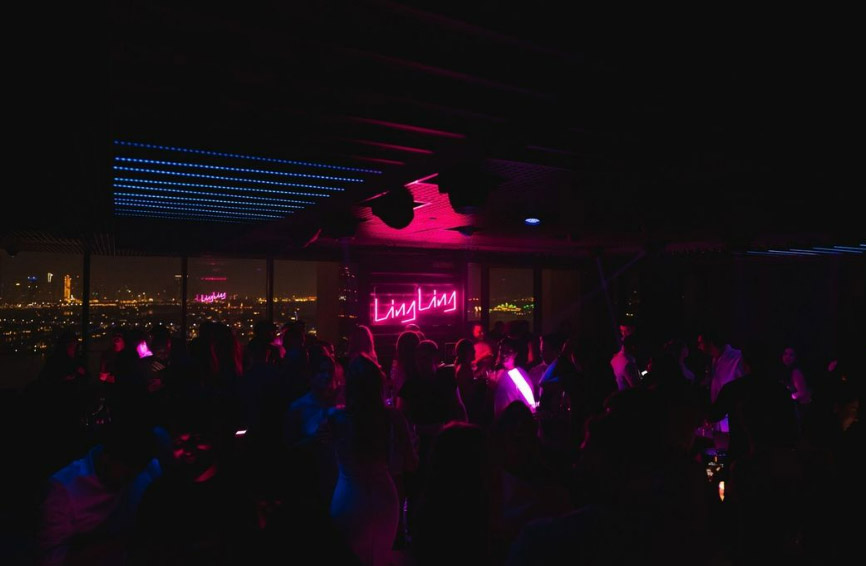The ambiance at Ling Ling is a captivating fusion of sleek elegance and high-energy revelry. The venue boasts stylish interiors with neon lights, deep red and purple LED strips, luxurious furnishings, and 180-degree panoramic views of the Palm Jumeirah, Arabian Sea, and Dubai’s skyline. Open Thursday to Saturday from 6:00 PM to 3:00 AM, the ultra-lounge transforms into an intimate nightclub after 11:00 PM, featuring a marble bar, DJ booth, and exclusive VIP tables. The upscale dress code—smart, chic attire—ensures a glamorous crowd, with a strict door policy enhancing its exclusivity.