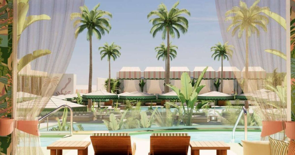 Positioned at the MGM Grand on the Las Vegas Strip, Palm Tree Beach Club spans 54,500 square feet of sun-drenched poolside terrain, channeling a relaxed tropical retreat amid the urban sprawl. Visitors navigate from the resort’s convention center valet, threading through The District past dining spots to escalators that deposit them at the entry gate, where lush greenery and pink accents signal the shift to island mode. The core area centers on multi-tiered pools ringed by daybeds and cabanas, with a raised DJ platform overlooking the water and a perimeter of shaded lounges for spillover. Operational Thursdays through Sundays from 11:00 a.m. to 6:00 p.m., the club beckons with bottle service and table reservations, converting midday soaks into structured festivities ripe for bachelor parties and ensemble dips.