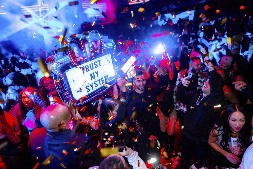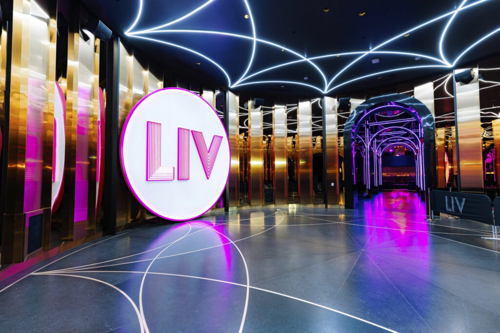 Housed inside the Fontainebleau Las Vegas on the northern end of the Strip, LIV Nightclub imports Miami’s relentless party pulse to a 50,000-square-foot setup that fuses indoor intensity with seamless ties to the adjacent LIV Beach dayclub. Entry funnels through the resort’s vibrant atrium, depositing visitors into a central arena where a circular DJ booth anchors the layout, encircled by 62 elevated VIP tables that position every guest in the thick of proceedings. The floor plan radiates outward to perimeter bars and secondary lounges, with direct access to the outdoor pool area for fluid movement during extended sessions. Running Thursdays through Sundays starting at 10:30 p.m., LIV pulls in lines for bottle service and table reservations that convert casual visits into locked-in celebrations, particularly for bachelor parties hunting that fresh Fontainebleau edge.