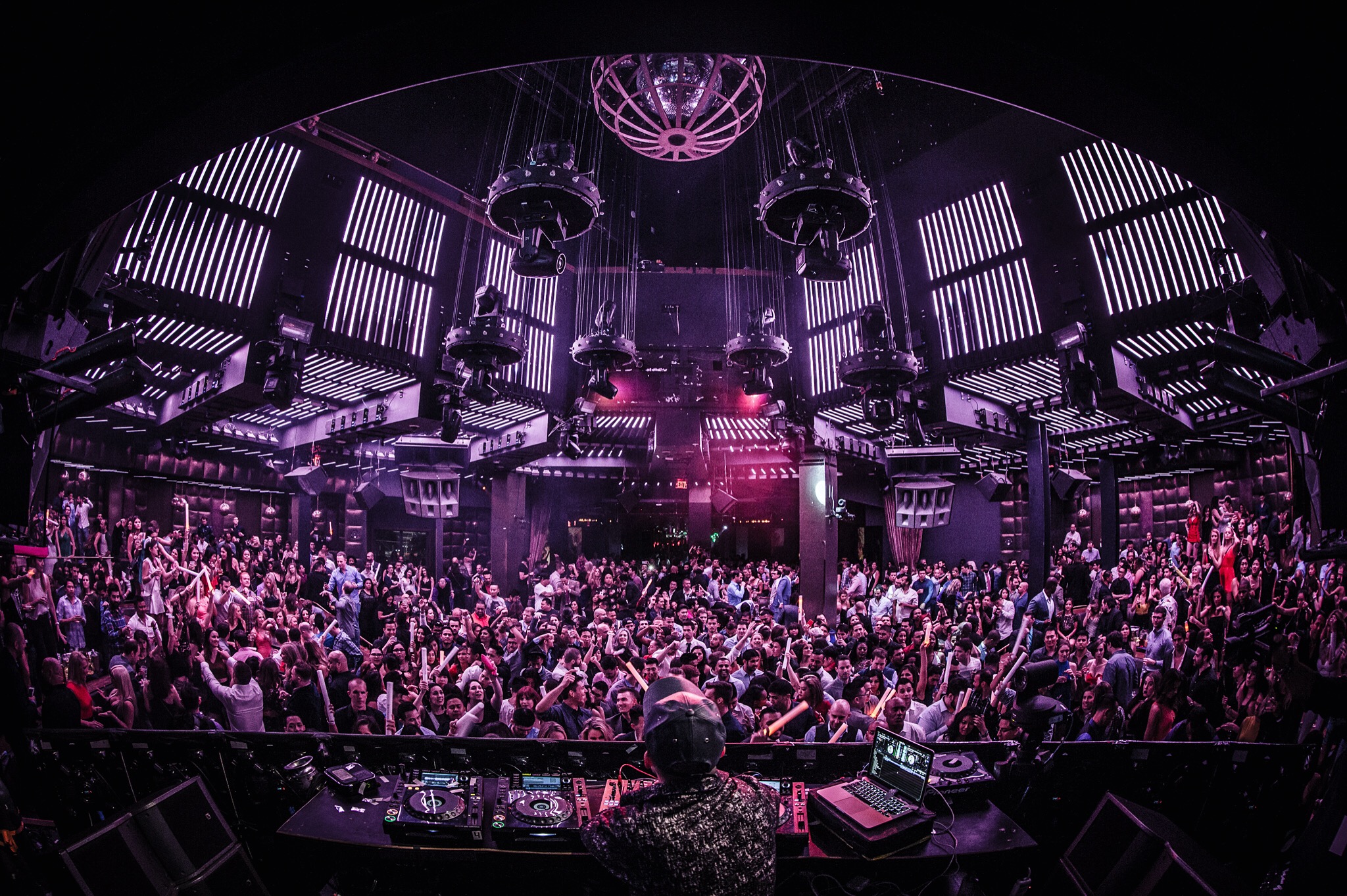 Ambiance pivots distinctly by area. The main room channels raw drive, with dark wood accents and metallic fixtures catching light from rotating rigs that sync with track builds. The pool deck counters with a lighter touch—loungers circling a secondary DJ riser, cooled by misters and warmed by subtle heaters on crisp nights. This split caters to varied rhythms: thumping EDM drops indoors give way to open-format spins outside, where conversations hold against softer decibels. Lighting shifts from cool purples in warm-ups to vivid oranges at crescendos, with the main room’s LED walls pulsing geometric patterns to anchor the scene without overwhelming.