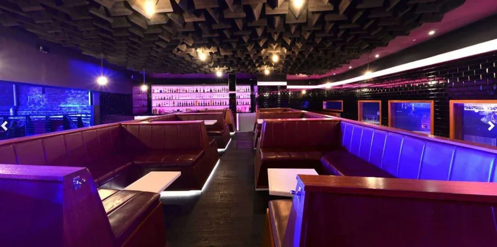 The bar fuels the frenzy with quick bites like loaded sliders (£12 equivalent) to sustain the stamina. Cocktails dazzle with the Sonic Surge (£15)—a rum-spiked burst of mango and chili—or the jug-sized Electric Elixir (£100), blending vodka, elderflower, and citrus for group revelry. Beers range £6-10, spirits with mixers £10-16, and 4-drink bundles start at £50 for seamless flow.