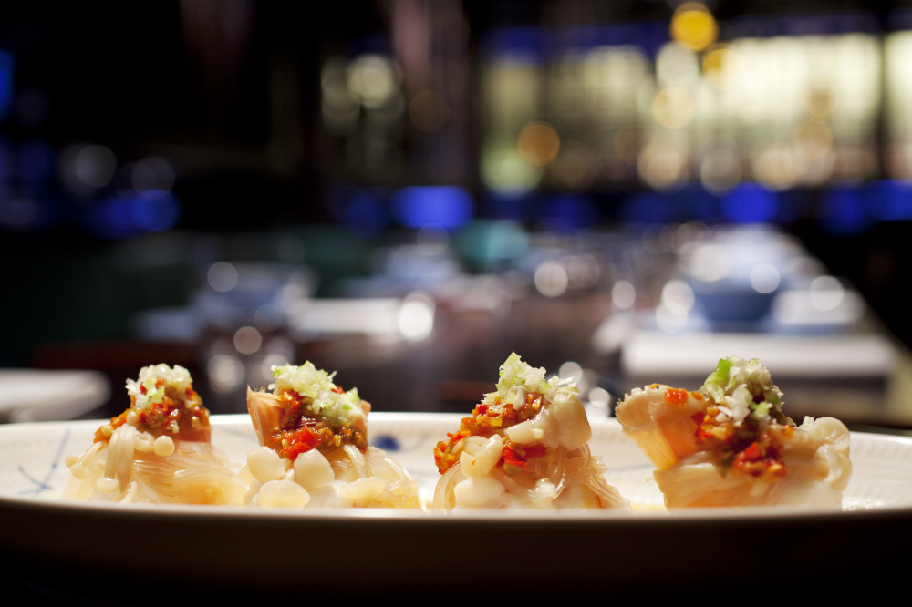 The menu showcases shareable Cantonese dishes with premium ingredients—think Peking duck with caviar and Hokkaido scallops—crafted across dim sum, sushi, and wok stations, paired with an award-winning wine list (over 400 labels), extensive sake selection, and cocktails like the Hakka (£16), a smoky mezcal-lychee blend with lemon and chili for a bold kick. Start with the Crispy Duck Salad (£18), tender slivers tossed with pomelo, cashews, and hoisin dressing for a sweet-tangy crunch. The Dim Sum Platter (£16) features har gau, scallop siu mai, and truffle chicken dumplings, delicate and umami-rich for sharing.
