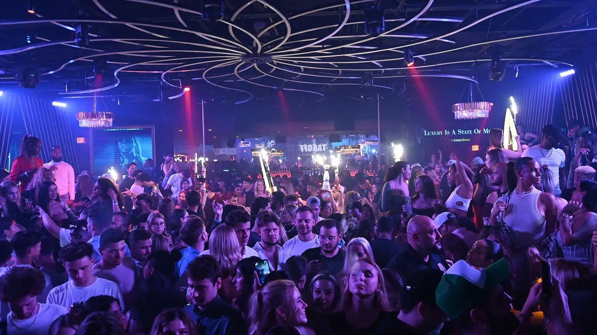The ambiance at Vendôme is a captivating blend of opulence and vibrant energy. Featuring gold chandeliers, Victorian frames, mirrored surfaces, and a 70-foot-high LED screen mimicking a starlit sky, the club creates an intimate yet electrifying atmosphere. Open Monday, Tuesday, Friday, and Saturday from 11:30 PM to 5:00 AM, Vendôme enforces a strict upscale dress code—collared shirts and dress shoes for men, elegant attire for women—with a 21+ policy. The 500-guest capacity venue, designed by Francois Frossard, balances LA cool, South Beach chic, and NYC music vibes, earning praise for its unique “beautiful chaos,” though some note high entry costs.