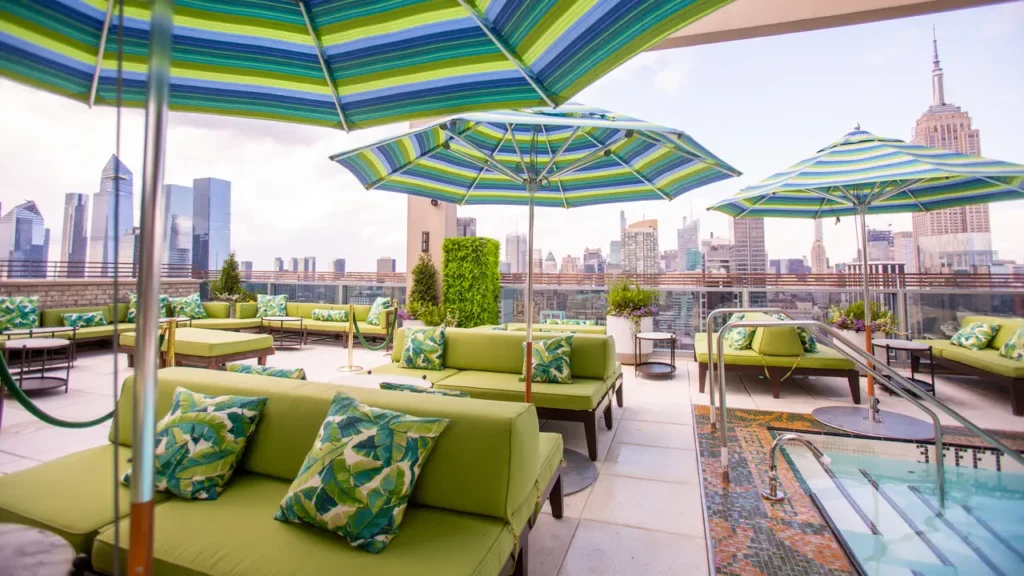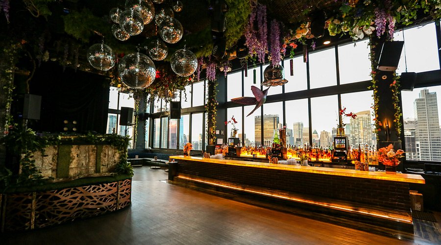 The ambiance at Somewhere Nowhere is a captivating blend of whimsical elegance and high-energy festivity. The 38th-floor indoor lounge features a Secret Garden with lush greenery and neon-lit gnome sculptures, while the 39th-floor open-air rooftop boasts a luxurious pool and 360-degree views of Manhattan’s skyline. Open Wednesday from 12:00 PM to 1:00 AM, Thursday to Saturday from 12:00 PM to 4:00 AM, and Sunday from 12:00 PM to 4:00 AM, the venue enforces a chic, upscale dress code—stylish attire, no athletic wear—maintaining a sophisticated vibe. State-of-the-art KV2 sound systems and vibrant lighting create an immersive experience, praised for its magical atmosphere, though some note occasional crowding.