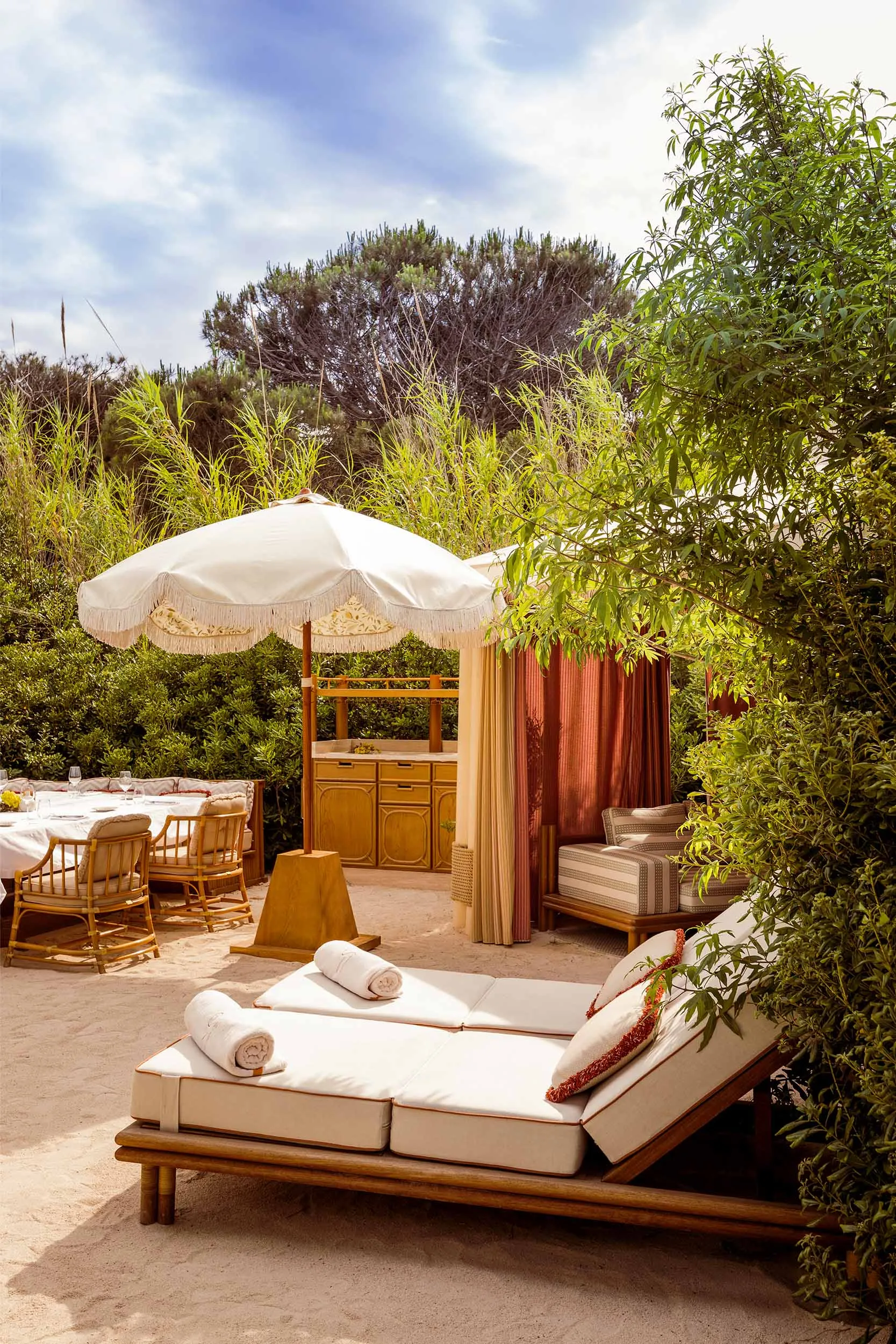 The ambiance at Gigi is a masterful blend of serene luxury and festive charm. The sprawling two-hectare property features lush Mediterranean gardens, a sparkling swimming pool, and direct access to the azure Pampelonne Beach. The decor, designed by Hugo Toro, evokes a chic beach house with natural aesthetics, warm lighting, and boho-chic touches like hammocks and woven furnishings. Open daily from 12:00 PM to 10:30 PM (April to October), Gigi transitions from relaxed daytime dining to lively evenings with live music or DJs, maintaining an upscale beach-chic dress code—stylish swimwear or elegant attire—to attract a glamorous crowd of locals, tourists, and celebrities.