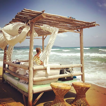 The ambiance at Indie Beach is a captivating fusion of rustic charm and trendy sophistication. The venue’s decor, featuring driftwood, bamboo, wicker, and lime-plastered walls in shades of grey, beige, and brown, creates a nomadic, Mykonos-inspired vibe. Open daily from 11:00 AM to 7:00 PM (April 18 to October 4, 2025), Indie Beach offers a relaxed daytime setting with sunbeds and private cabanas, transitioning into a lively scene with talented DJs spinning pop, chill-house, and techno beats, especially on Tuesdays and Saturdays. The upscale beach-chic dress code—stylish swimwear and elegant cover-ups—complements the fashionable crowd, with amenities like free Wi-Fi, parking, and a shuttle boat service enhancing accessibility.