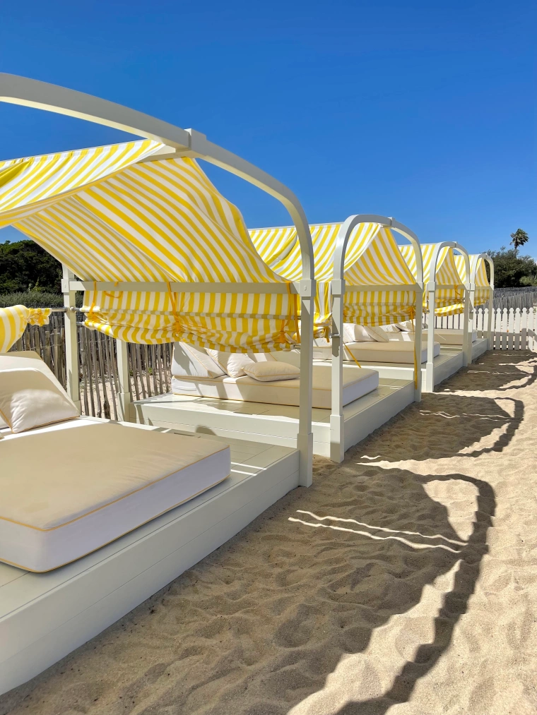 The ambiance at Loulou is a captivating fusion of bohemian charm and Parisian joie de vivre. Set against the iconic Pampelonne Beach, the venue features plush sun loungers, shaded cabanas, and a chic restaurant surrounded by wild vegetation and dunes, offering stunning Mediterranean views. Open daily from 11:00 AM to 8:30 PM (May to September), Loulou transitions from relaxed daytime dining to lively afternoons with live music and DJs spinning contemporary hits. The upscale beach-chic dress code—elegant swimwear and stylish cover-ups—ensures a glamorous crowd. Reviews praise the laid-back sophistication and natural beauty, though some note high pricing.