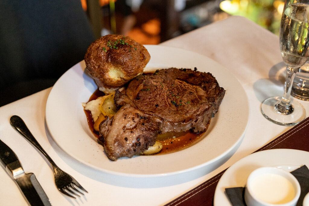 Marine treasures prevail with the Seafood Tower (CAD $120 for two), a stacked presentation of mollusks, crustaceans, claw clusters, and rock lobster with sharp sauce and herb paste, tangy and lavish. The Lobster Bisque (CAD $22) infuses segments of tail in lush saffron base with leaf garnish, reassuring and scented. Beef dominates: the Steak au Poivre (CAD $58 for 8 oz.) singes strip loin in spice shell with spirit foam and root slices, yielding and commandingly flavored. The Dry-Aged Ribeye (CAD $72 for 14 oz.) supplies streaked lavishness with botanical paste and tuber accompaniments, marked and hydrated. For a merged focal point, the Seared Scallops addition (CAD $28) surmounts any beef with caramelized bivalves and tuber blend, abundant and anchored. Pasta choices encompass the Beef Stroganoff (CAD $32), carved flesh in spore-cream emulsion over strand pasta, considerable and evocative. Non-meat eaters value the Truffled Mushroom Risotto (CAD $24), fluid grains with gathered domes and shaved dairy, sumptuous and settled.